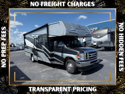 Sleeps 7 Slides 2 Length 27 ft 5 in Ext Width 8 ft 4 in Ext Height 10 ft 11 in Interior Color Riviera, Fawn Maple Exterior Color White Fiberglass w/Graphics. Optional Full-Body Paint; Cadet, Glacier Hitch Weight 7500 lbs GVWR 14500 lbs Fresh Water Capacity 50 gals Grey Water Capacity 31 gals Black Water Capacity 31 gals Generator NPS 4500 Fuel Type Gasoline Chassis Ford E-450 Fuel Capacity 55 gals Wheelbase 190 in Number Of Bunks 1 Available Beds Queen Refrigerator Type 12V Double Door Refrigerator Size 10.7 cu ft Cooktop Burners 3 Number of Awnings 1 Axle Weight Front 5000 lbs Axle Weight Rear 9600 lbs LP Tank Capacity 68 lbs. Water Heater Type On Demand Tankless AC BTU 15000 btu TV Info Coach 40" Smart TV Awning Info 18' Power with LED Light Strip Gross Combined Weight 22000 lbs Shower Type Standard Electrical Service 30 amp Similar Motor Home Class C Floorplans