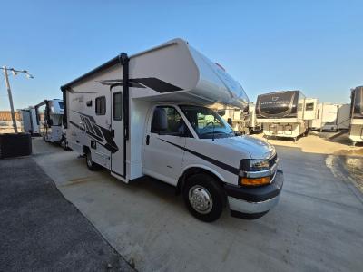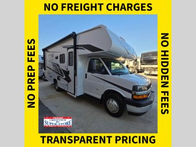 Sleeps 6 Slides 1 Length 24 ft 9 in Ext Width 8 ft 4 in Ext Height 10 ft 10 in Interior Color Magnolia, Frinton Bisque Woodgrain Exterior Color Leprechaun Graphics Hitch Weight 7500 lbs GVWR 12300 lbs Fresh Water Capacity 43 gals Grey Water Capacity 28 gals Black Water Capacity 31 gals Furnace BTU 18000 btu Generator NPS 4500 Gas Fuel Type Gas Engine 6.6L V8 Chassis Chevy 4300 Horsepower 401 hp Fuel Capacity 57 gals Wheelbase 159 in Number Of Bunks 1 Available Beds Queen Torque 464 ft-lb Refrigerator Type 12V Refrigerator Size 10 cu ft Cooktop Burners 3 Shower Size 24" x 32" Number of Awnings 1 Axle Weight Front 4300 lbs Axle Weight Rear 8600 lbs LP Tank Capacity 86 lbs. Water Heater Type Tankless AC BTU 15000 btu TV Info Coach 32" Swing-Arm TV Awning Info 15" Power w/LED Light Strip Gross Combined Weight 20000 lbs Shower Type Standard Electrical Service 30 amp Similar Motor Home Class C Floorplans