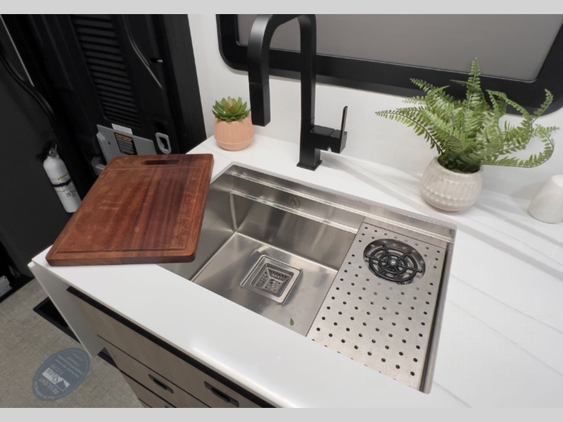 • Stainless Steel Sink w/ countertop mounted glass washer & Cutting Board