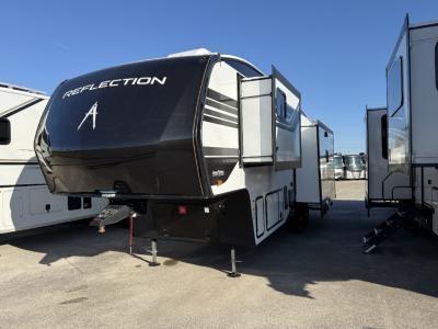 With any Reflection fifth wheel by Grand Design, you will have a solar panel for off-grid camping and a 60 amp charge controller and inverter prep, a Universal All-In-One docking station, unobstructed pass-through storage, and Goodyear Endurance tires. Each is constructed of gel coat exterior sidewalls, residential 5" truss rafters, walk-on roof decking, a fiberglass and radiant foil roof and front cap insulation plus laminated aluminum framed side walls, roof and end walls in slide rooms. Head inside to enjoy residential hardwood cabinet doors, premium Congoleum flooring, a spacious shower with a glass door, and many more comforts!