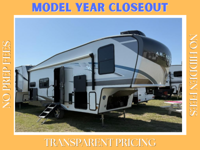 Inside, you'll love the tall slide outs for added space and comfort, along with black roller shades throughout, spacious showers, and unmatched storage space. The on-demand tankless water heater, LED interior and exterior lighting, and exterior convenience center are just a few features that will set the Arcadia Super Lites apart from the rest.