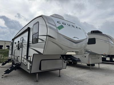 The Keystone Cougar Half-Ton fifth wheel and travel trailers are known as one of America's favorites for a reason! Some of those reasons are the exclusive features that come from Keystone, like the Winegard Air 360+ omni-directional rooftop antenna, the in-floor heating ducts, and the HyperCore composite wall construction with Vixen Fibrogloss high-gloss finish. The Cougar Half-Ton has a Climate Guard protection package with heat-deflecting white sidewalls, two roof attic vents, PEX plumbing and more to enjoy four season camping. Inside, you'll love the dimmable lighting, night roller shades throughout, shower skylight, and bedside USB outlets to keep your electronics charged.
