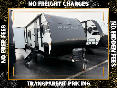 Comfort is found all throughout each one of these Keystone RV Passport Classic travel trailers! They are built with a one-piece polypropylene underbelly to protect your unit's vitals, and a seamless, laminated and gel-coated filon exterior that is sure to turn heads at the campsite. A fully walkable roof makes it easy to access when needed, and the leaf spring straight axles help provide smooth towing. The residential durable Beauflor vinyl flooring throughout and the seamless kitchen countertops will be easy to clean, and you can stay cool on a hot summer day with the A/C unit. Come find the Passport Classic that fits your needs best!
