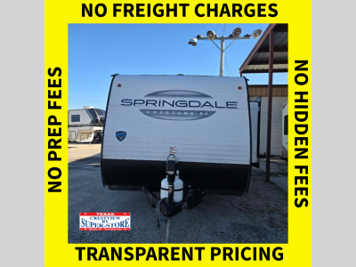 With any Springdale Mini travel trailer by Keystone, you will enjoy lightweight towing thanks to their single-axle! The AlphaPly TPO roof membrane is ultra durable, and the power awning will provide protection from the sun as you relax in your camp chairs outside. Each model includes blackout night shades, LED lighting, plus many more interior comforts. There is also a roof A/C and 20K BTU furnace to keep you comfortable, plus a tankless water heater for endless hot showers!