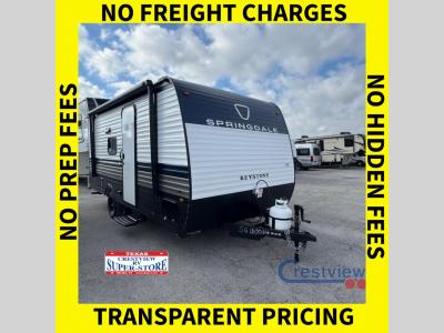 With any Springdale Mini travel trailer by Keystone, you will enjoy lightweight towing thanks to their single-axle! The AlphaPly TPO roof membrane is ultra durable, and the power awning will provide protection from the sun as you relax in your camp chairs outside. Each model includes blackout night shades, LED lighting, plus many more interior comforts. There is also a roof A/C and 20K BTU furnace to keep you comfortable, plus a tankless water heater for endless hot showers!