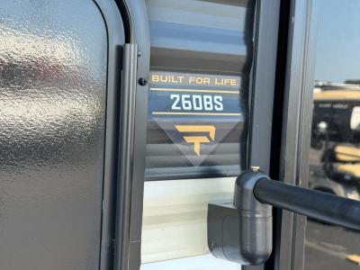 Each model is constructed with a fully enclosed underbelly, a PVC roof membrane, and gold reflective exterior windows that are sure to be eye-catching. The power tongue jack and power stabilizer jacks will have you set up in no-time, and the best-in-class drop frame pass-through storage means you can bring along extra camp gear. Inside, you'll find Congoleum flooring, seamless pressed countertops, a designer bedding package, and many more comforts.