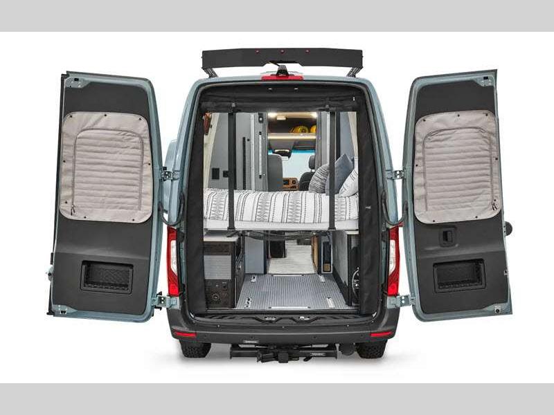 Sleeps 2 Length 19 ft 7 in Ext Width 7 ft 5 in Ext Height 10 ft Int Height 6 ft 3 in Interior Color Overlander, Stealth Gray Exterior Color Silver Grey, Stone Grey, Selenite w/RAPTOR/RAPTOR+ Tough & Tintable Protective Coating Hitch Weight 5000 lbs GVWR 9050 lbs Fresh Water Capacity 35 gals Grey Water Capacity 21 gals Fuel Type Diesel Engine 2.0L 4-Cylinder Turbo Chassis Mercedes Benz Sprinter AWD Fuel Capacity 24.5 gals Wheelbase 144 in Refrigerator Type 12V Compressor Driven Refrigerator/Freezer Refrigerator Size 3.0 cu ft Cooktop Burners 1 Shower Size 31" x 26" Axle Weight Front 4409 lbs Axle Weight Rear 5359 lbs Water Heater Type Continuous Gross Combined Weight 13930 lbs Shower Type Wet/Bath Shower Electrical Service 30 amp Solar Wattage 210 watts
